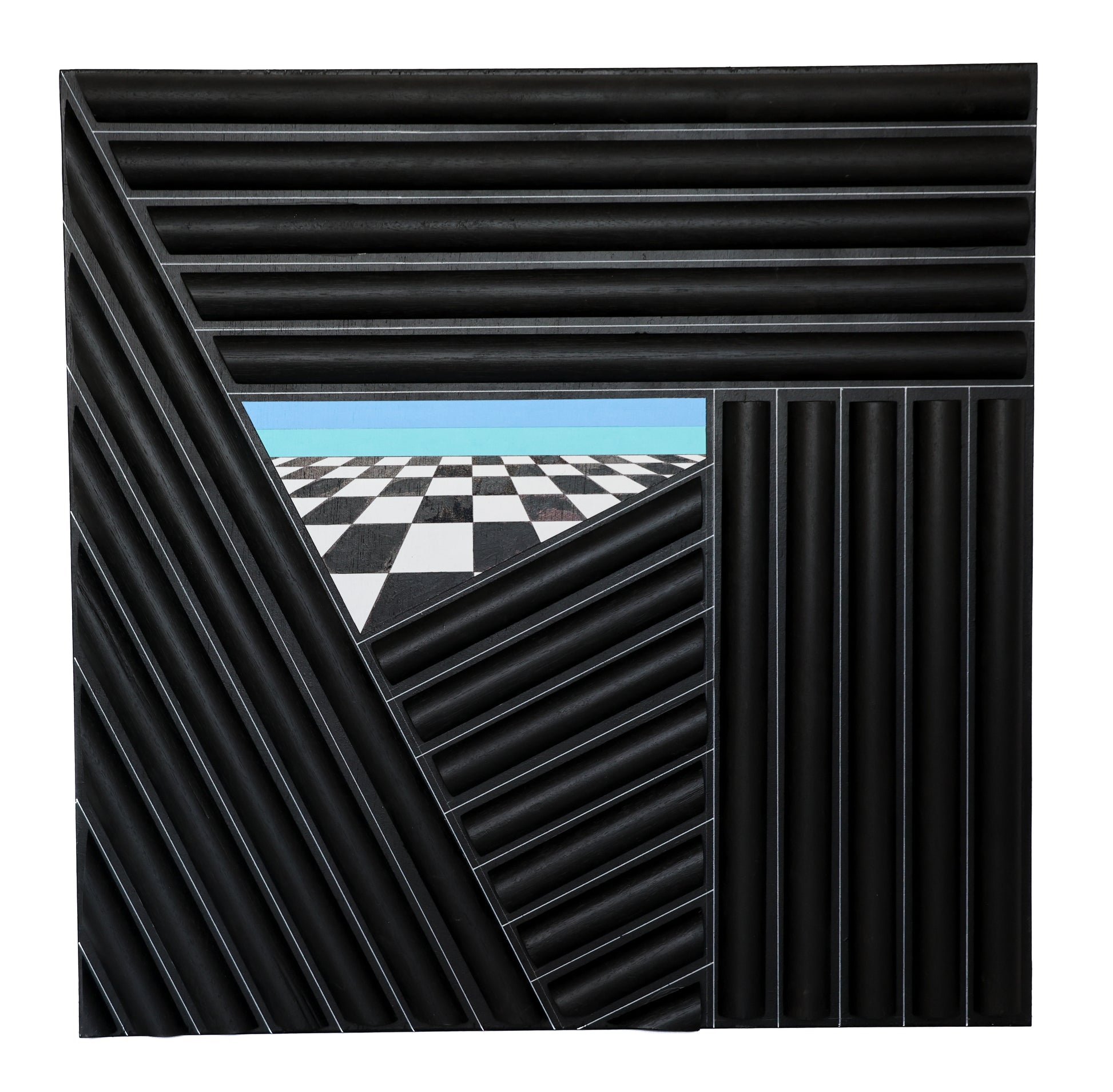 The striking 63cm x 63cm original is acrylic on ply timber.